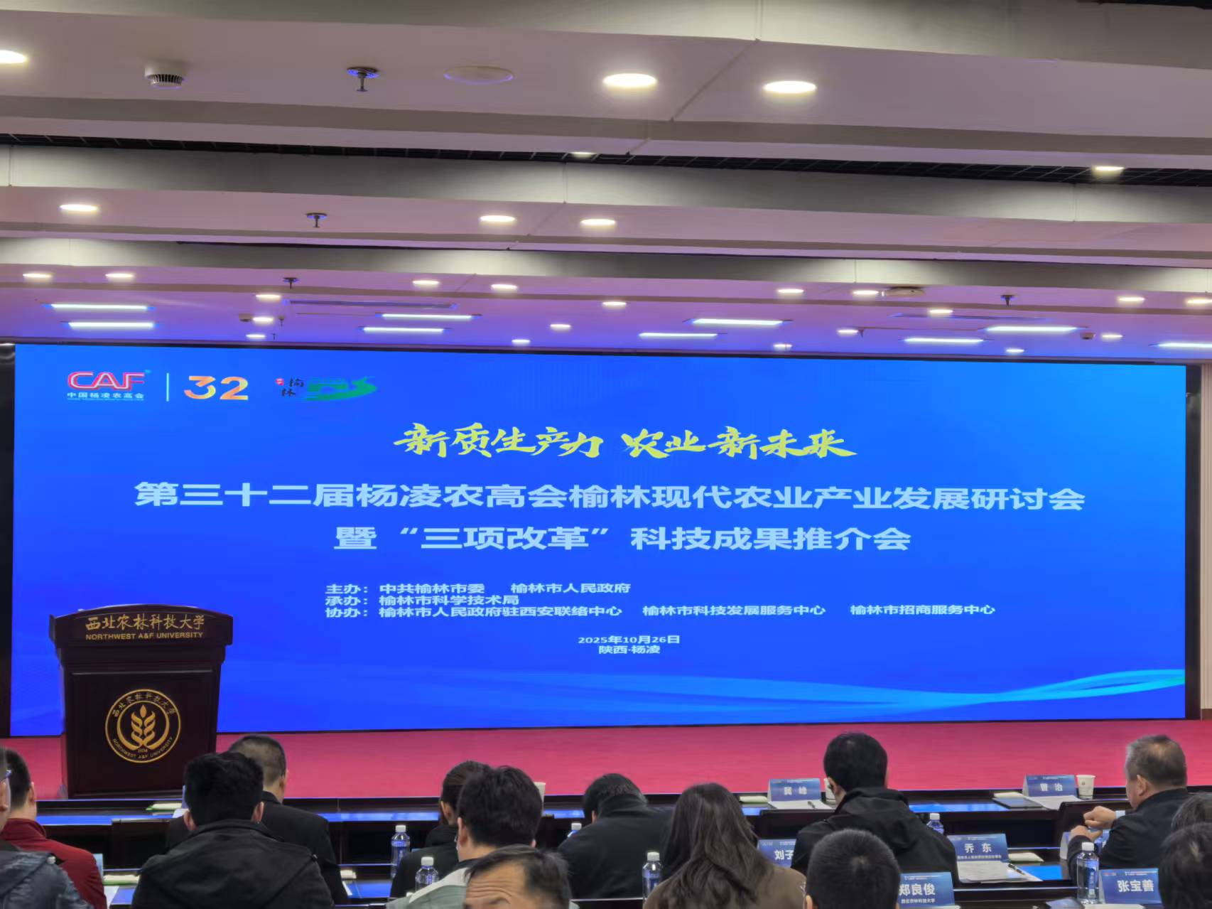 10月26日,第三十二届杨凌农高会榆林现代农业产业发展研讨会暨“三项改革”科技成果推介会在陕西咸阳举行。食品学院教授姚卫蓉、副研究员邱超,江南大学技术转移中心榆林分中心主任樊铭聪以及产研院相关人员参加活动。陕西省科技厅、榆林市政府、西北农林科技大学、杨凌示范区等相关领导,以及相关投融资机构和企业代表等参加会议。