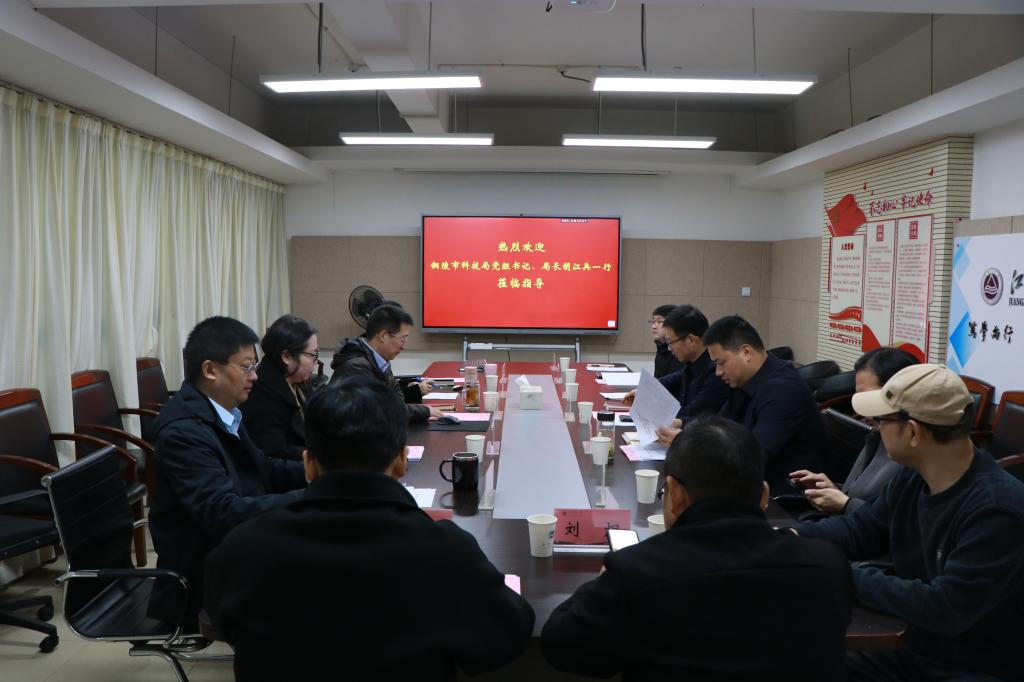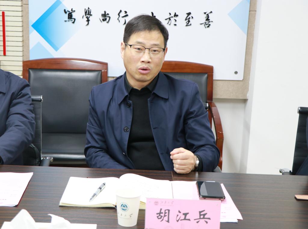 王立对胡江兵一行的来访表示欢迎,从学校历史沿革、办学规模、校区建设、学科特色、成果转化、平台建设和社会影响等方面介绍了学校概况。他表示,学校和铜陵市合作基础良好,希望继续以铜陵分中心为纽带,进一步深化合作,为铜陵市、义安区的高质量发展贡献更多江南力量。吴祐昕汇报了铜陵分中心建设情况。